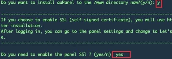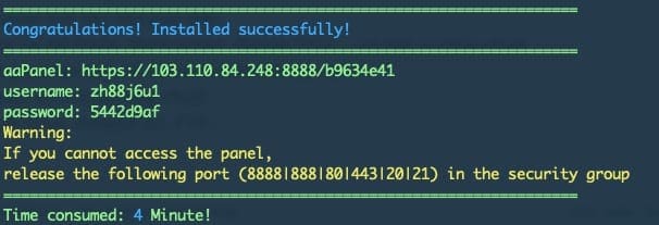 Sau khi hoàn tất, AAPanel sẽ hiển thị: